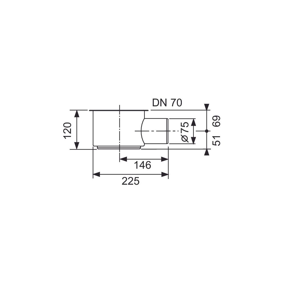 TECE Drainline afloop horizontaal 'max' debiet 1,20l/sec DN70