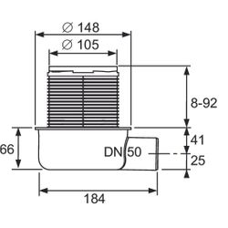 TECE Drainpoint S set horizontaal 'supervlak' debiet 0,6l/sec DN50 met steunrand