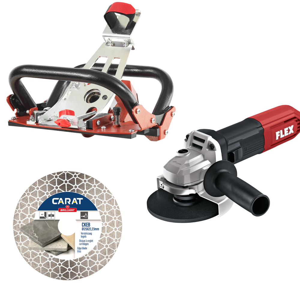 Tools PROMOPAKKET voor droog zagen van verstekken Bestaat uit: 1x Raimondi BC 45 Jolly Performer verstekzaag 1x Flex haakse slijper 1100W 1x Carat CKEB slijpschijf voor verstekken